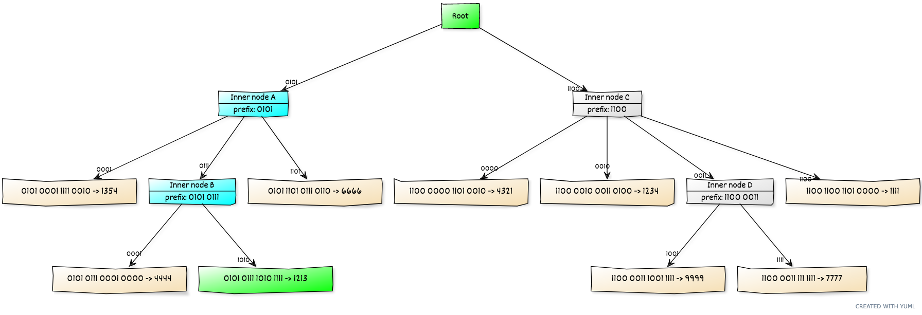 - derive point-values $(0, 4444)$, $(1, 1213)$ according to the leaf nodes