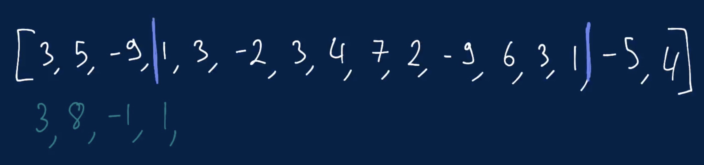 Input: nums = [3,5,-9,1,3,-2,3,4,7,2,-9,6,3,1,-5,4]