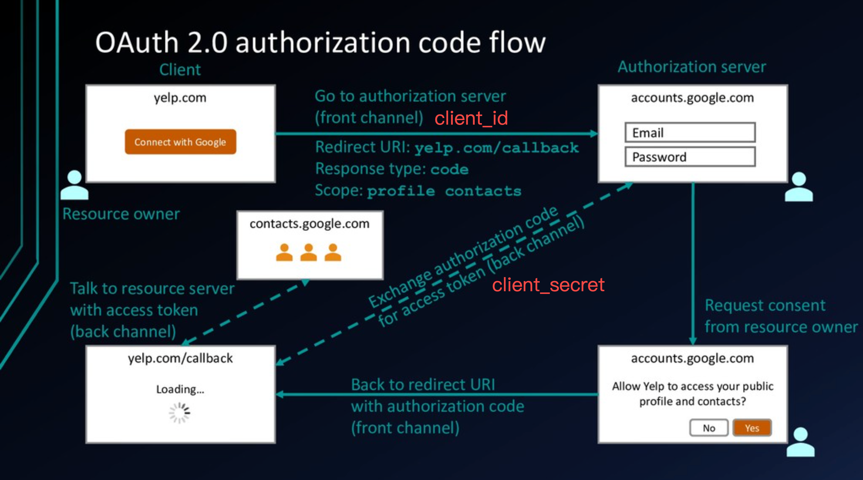 Google authenticates you and sends a redirect with a short lived code α