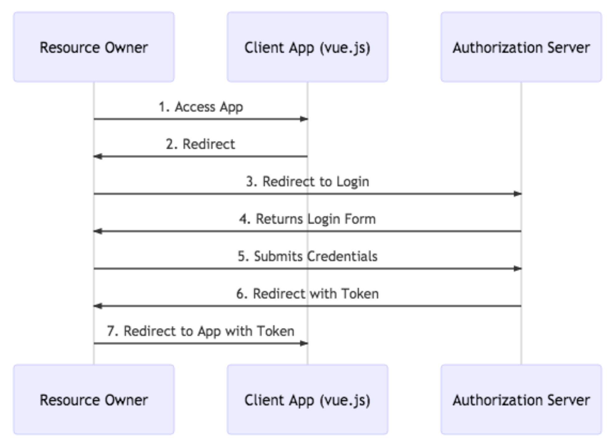- The browser follows the redirect to your Vue app, which parses the token out of the URL