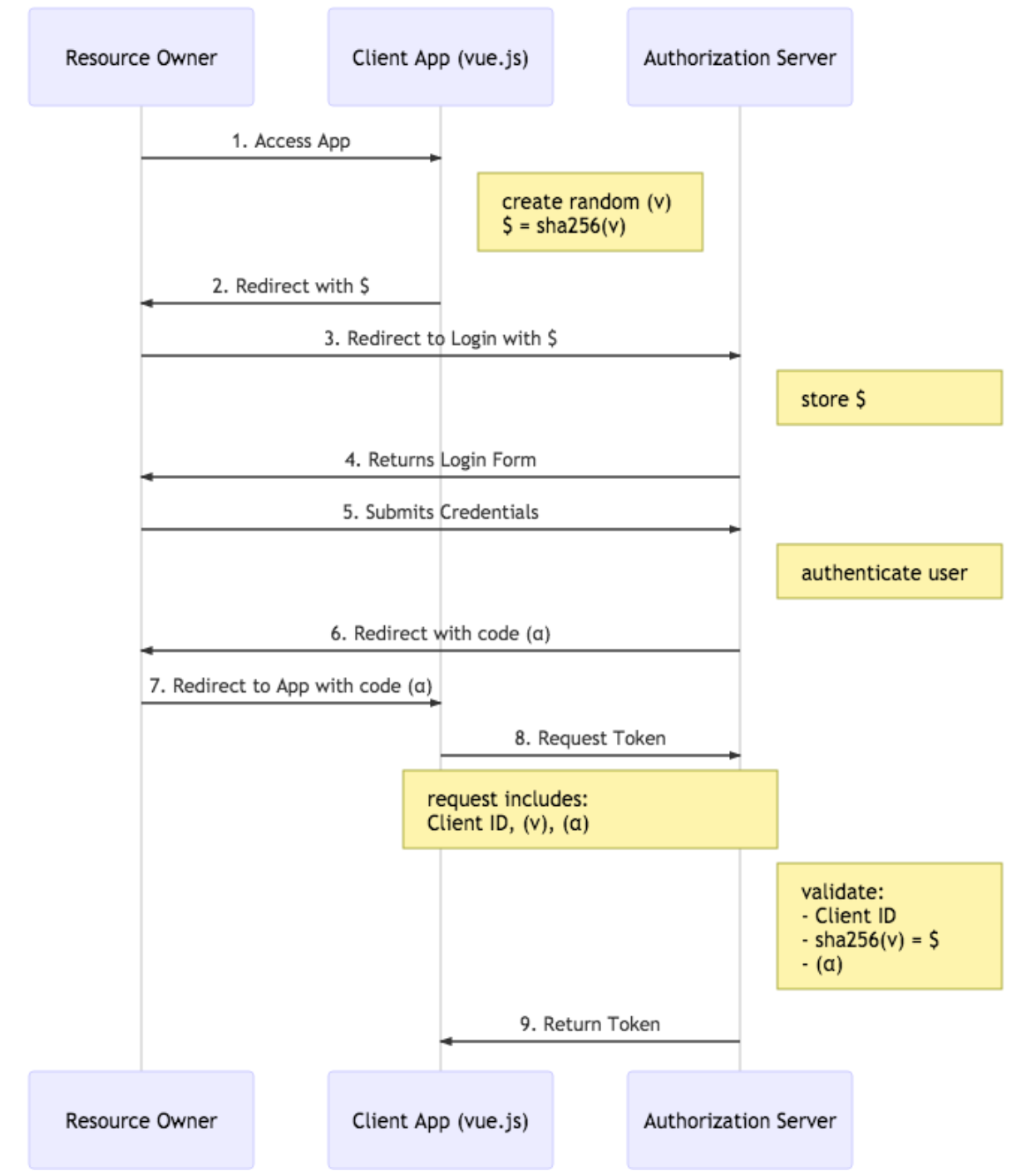 Steps 6 and 7 above involve a redirect back to the Vue app in the browser. Redirects are HTTP GETs. As such, your only opportunity to get a token back to the app is to include it in the URL. The token is now sitting there in the browser history. It’s especially problematic if the token is long lived. And many people sync their browser history across multiple devices further expanding the attack.